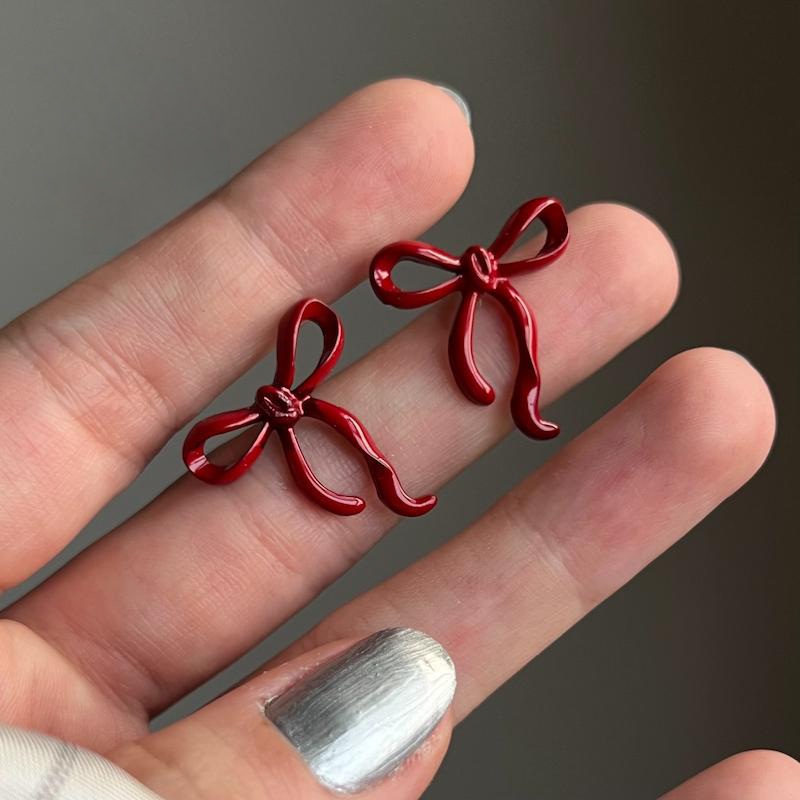 گوشواره میخی پاپیونی قرمز